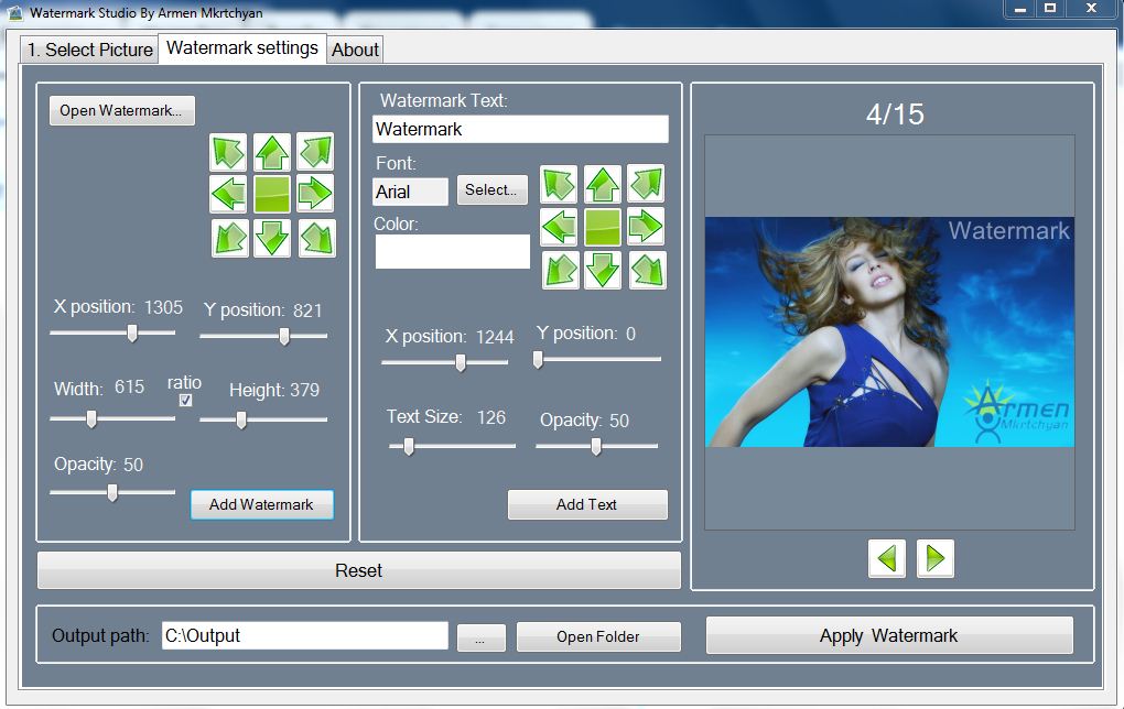 Ծրագիրը նախատեսված է Ձեր նկարներին տեքստային կամ պատկերային պիտակներ (watermark) ավելացնելու համար: